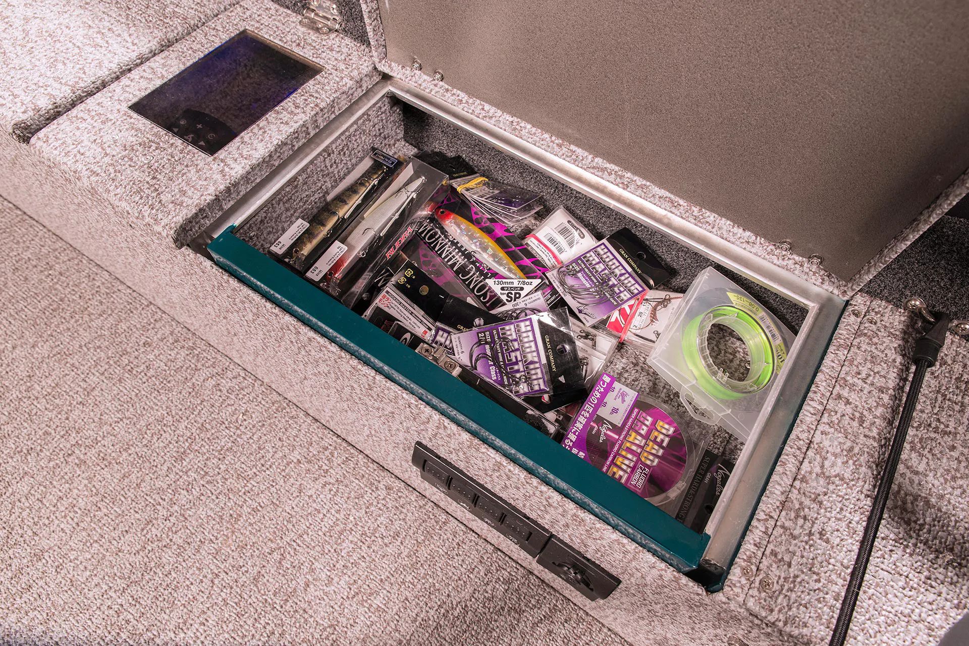 Das Layout der Finval Rangy 510 BSC folgt den bewährten Standards von Bassbooten, wobei ein Schwerpunkt auf Funktionalität und Komfort liegt. Das sportliche Livewell befindet sich taktvoll im hinteren Bereich des Boots, während das großzügige Bugdeck Ihnen den perfekten Platz bietet, um Ihre Strategien zu planen und die Natur zu genießen. Ein umwandelbarer Sitz im Achterdeck ermöglicht es Ihnen, sich frei im Cockpit zu bewegen, während eine Vielzahl von Stauräumen und offenen Nischen sicherstellen, dass Ihre Ausrüstung stets griffbereit ist.